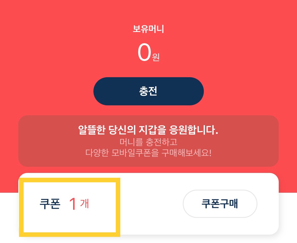 6. 아래와 같이 쿠폰 1개가 뜬다.