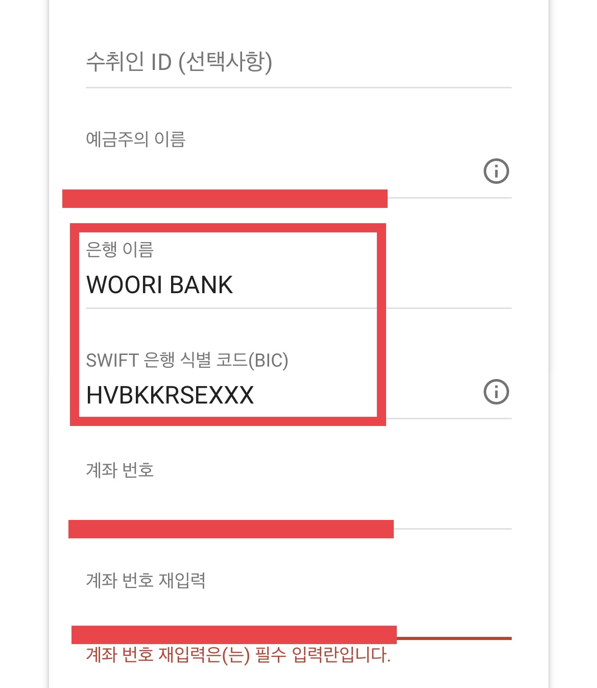 그리고 계좌번호까지 정확히 기입하면 됨!