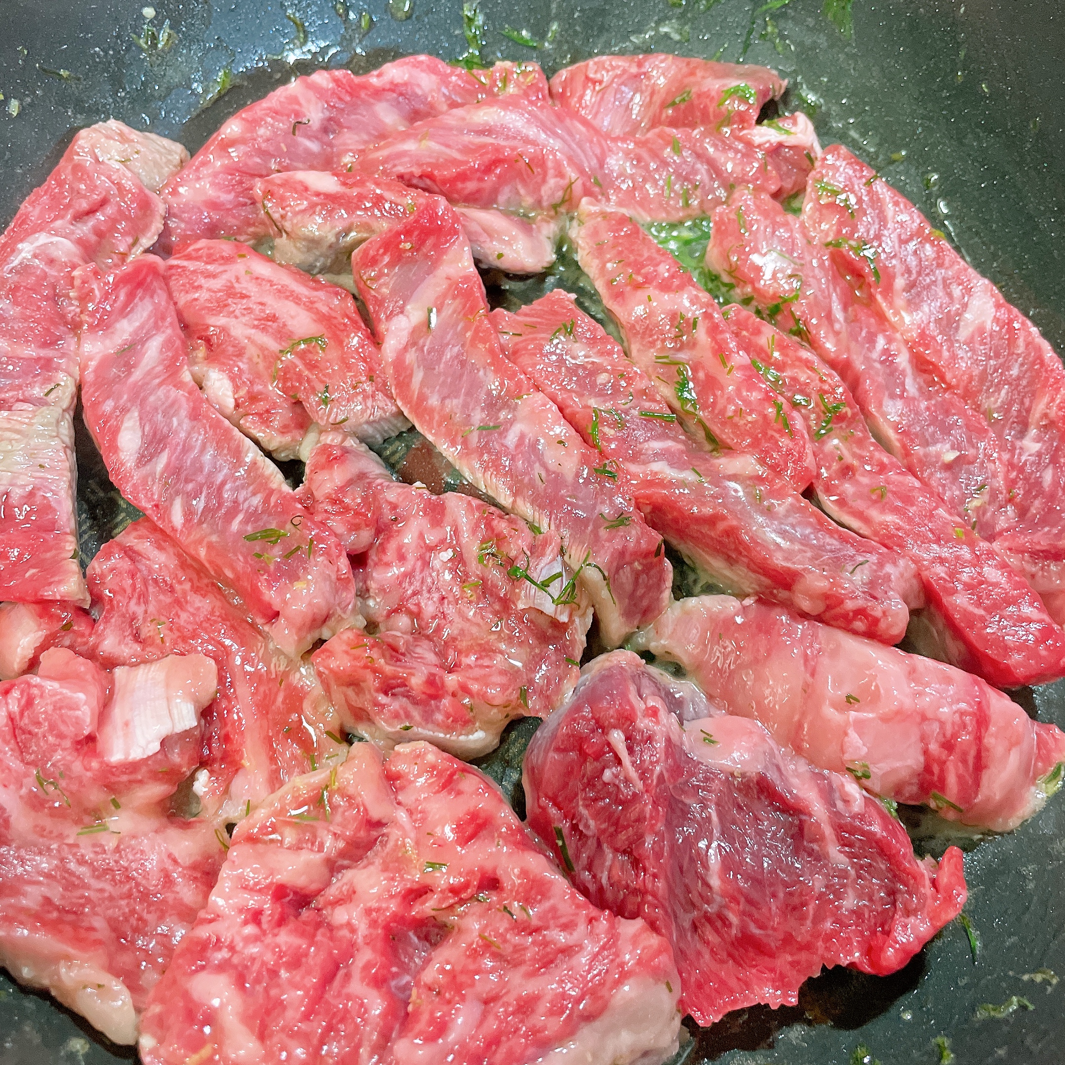 소고기를 팬에 올려준다.