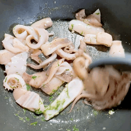 오징어를 넣고 구워준다.