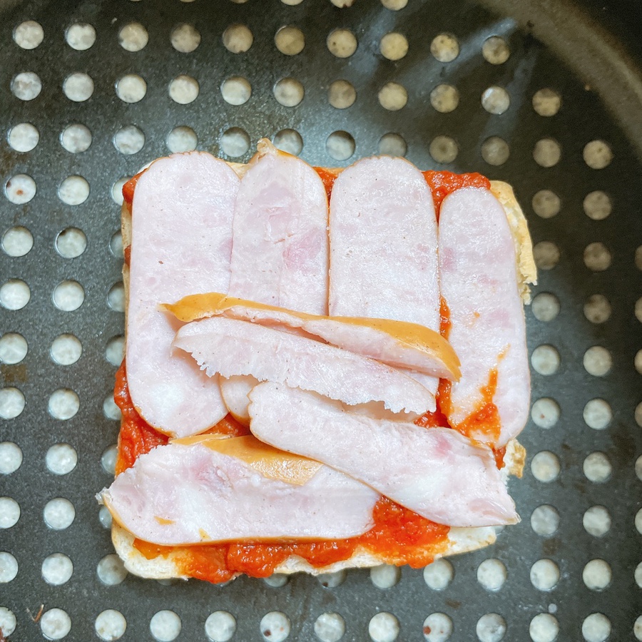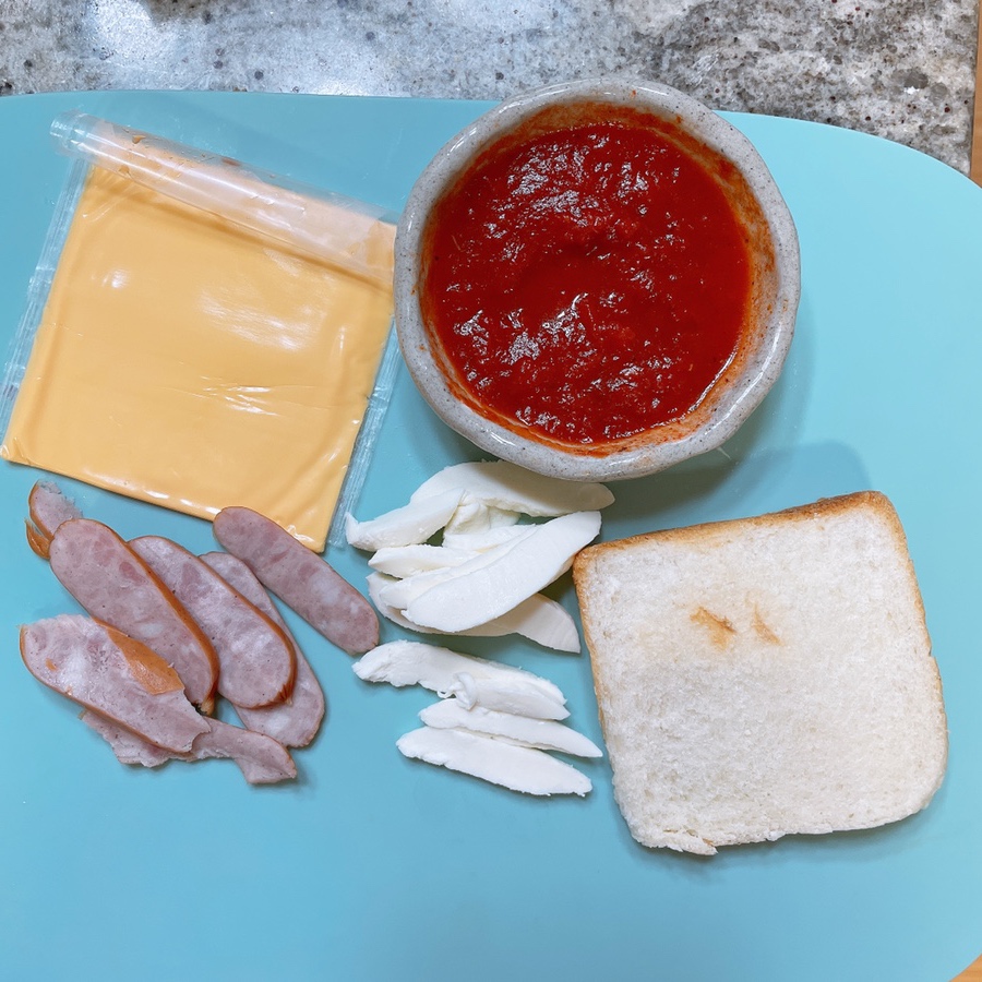 토마토소스, 체다치즈, 스트링치즈, 소세지, 식빵