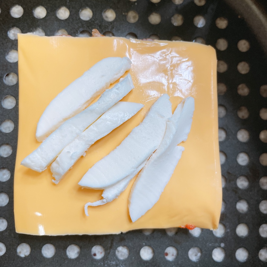 체다치즈 슬라이스와 스트링치즈를 얹어준다.🧀
