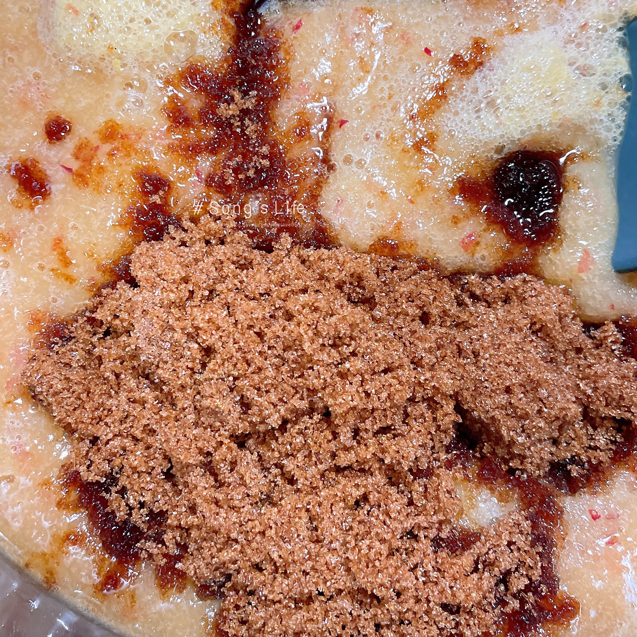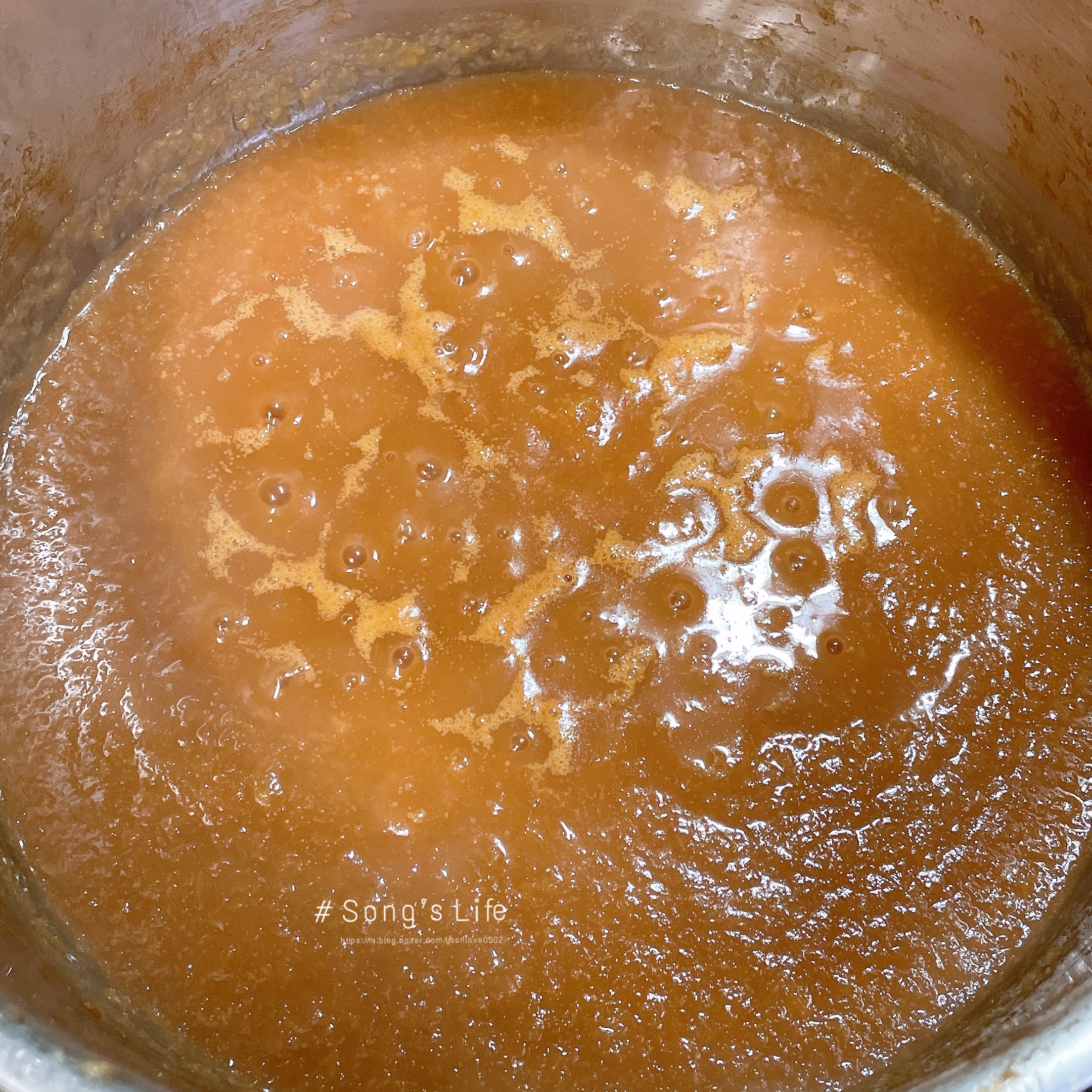 #2. 설탕을 넣고 강불로 녹이면서 빠르게 끓인다.