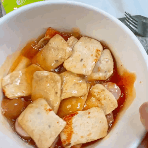 칼로리는 어묵, 떡, 스프 합해서 500kcal이다.