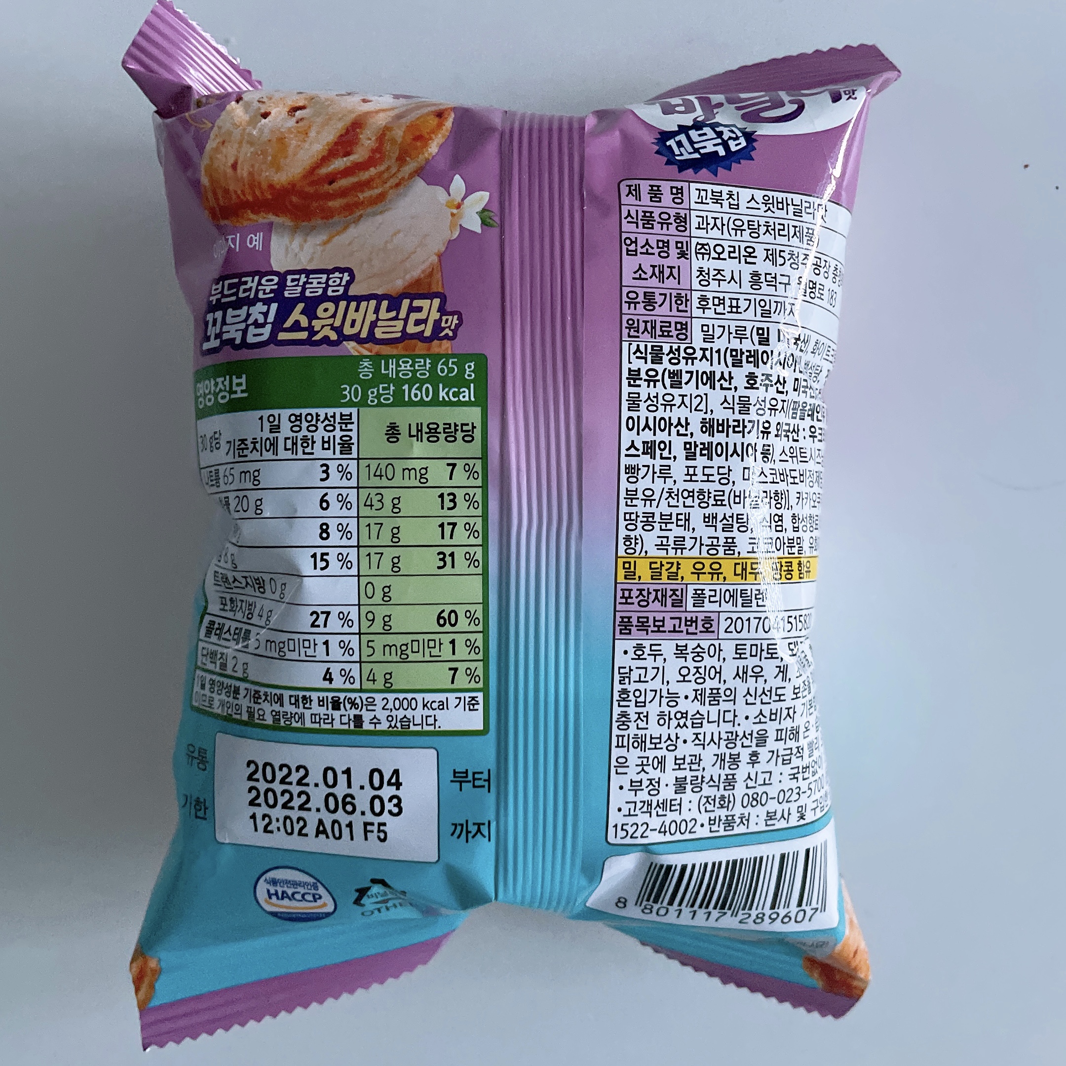 칼로리는 65g짜리 한봉지당 346kcal