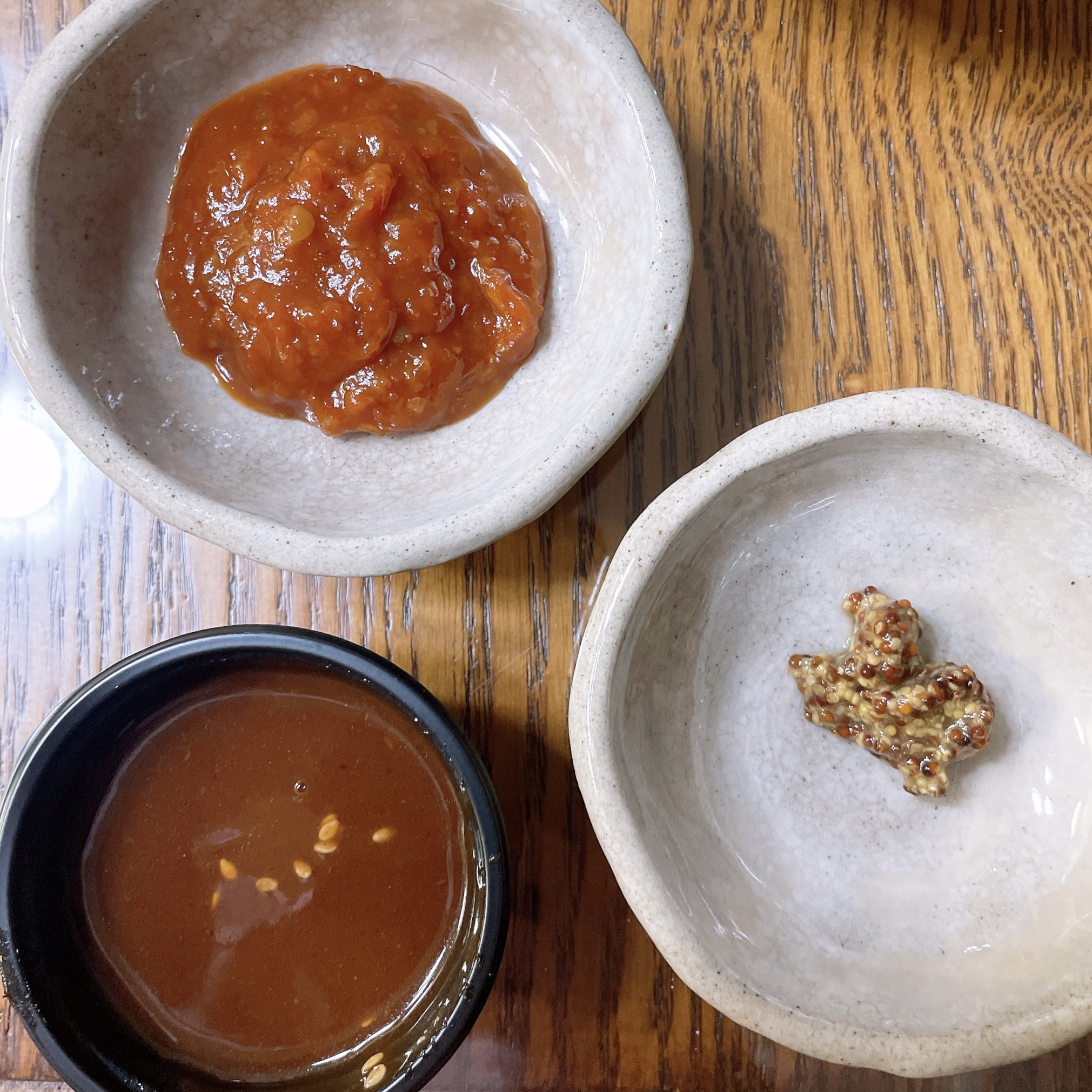 파김치랑 쌈장, 겨자씨, 돈까스소스까지
