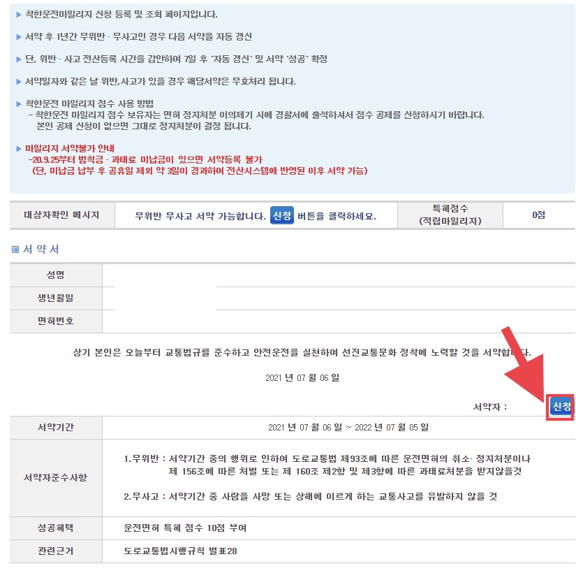 사고나 벌점시 다음 날 다시 신청 가능하다.