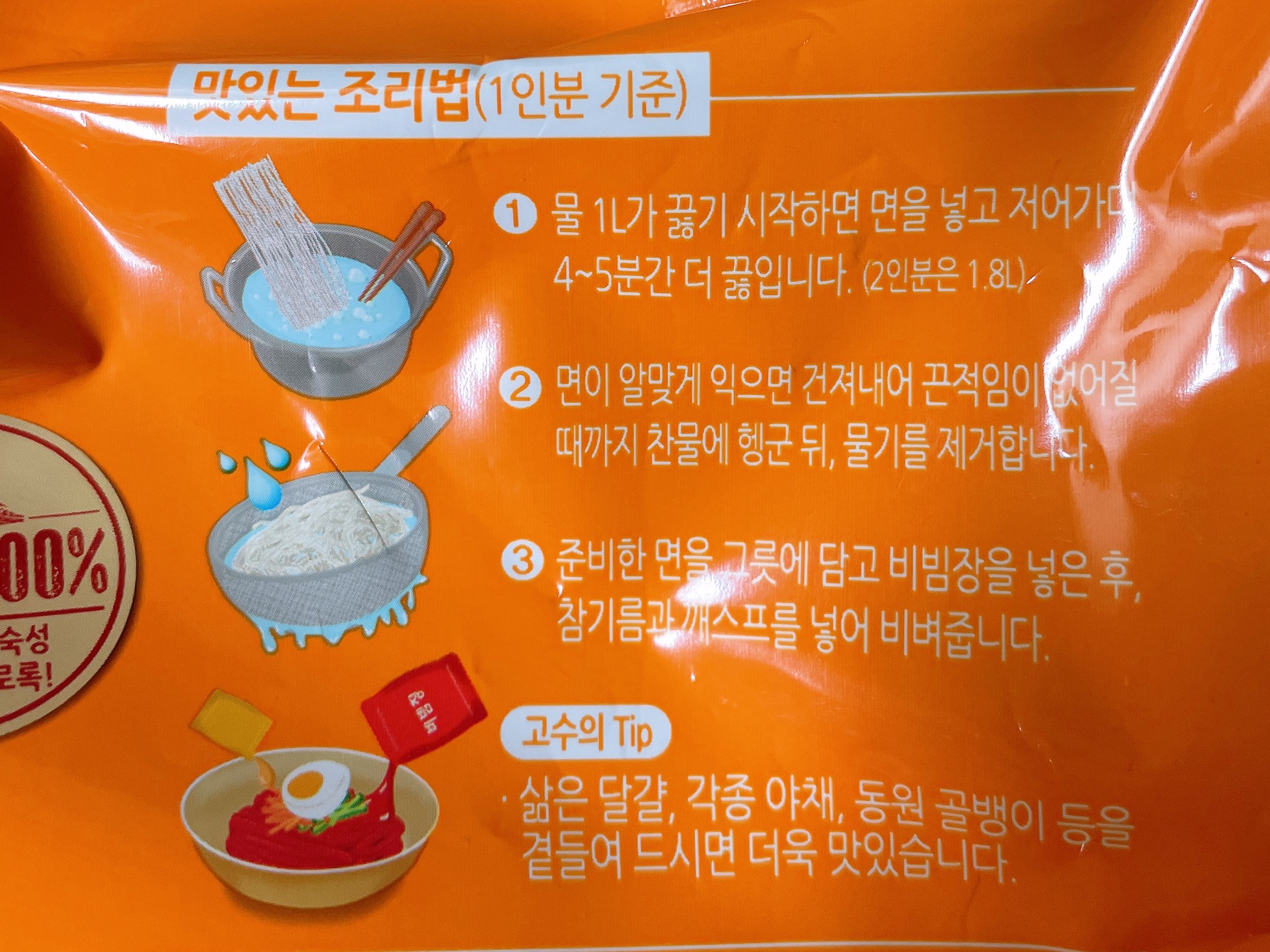 1인분은 물 1L에 2인분은 1.8L에 면을 삶아준다.