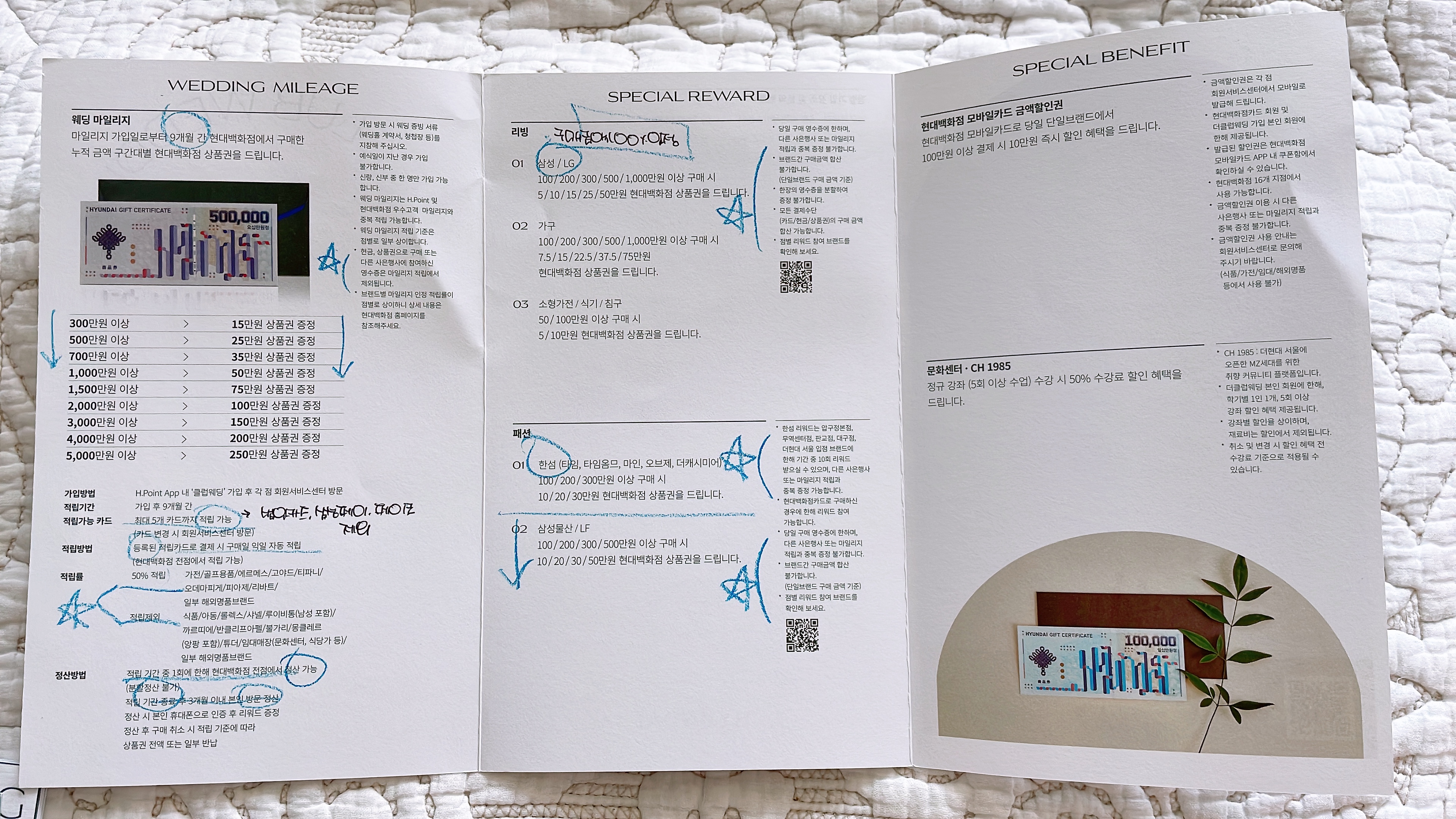 이번 포스팅은 결혼 준비하시는 분들은 대부분 알고 있는 웨딩마일리지에 관한 포스팅! 롯데백화점, 현대백화점, 갤러리아백화점 세곳이 있고 나는 그 중 롯데를 이용 중이다. 이유는 바로 더블