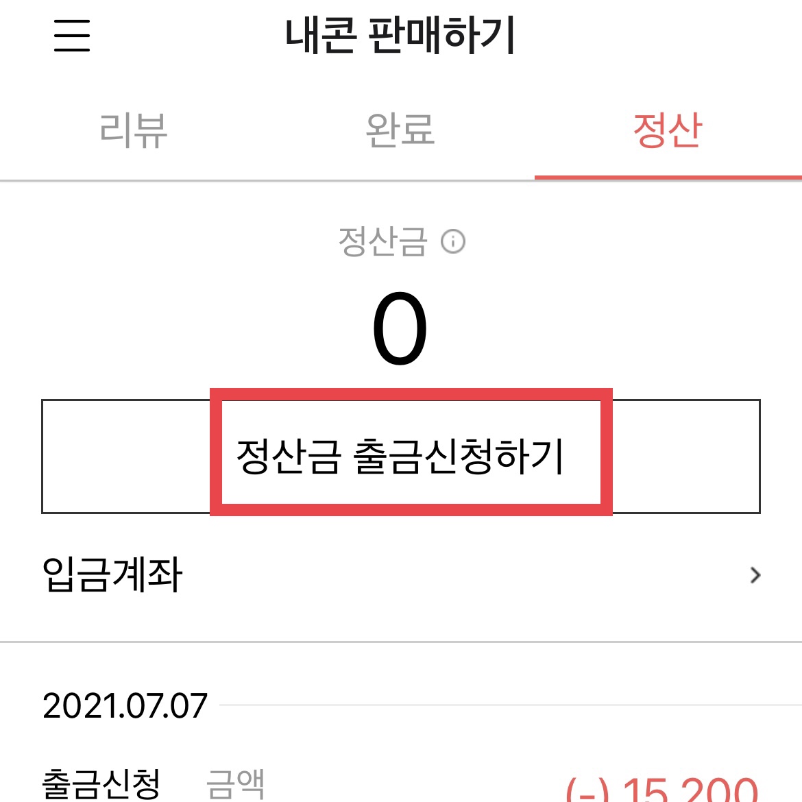 10. 하루정도 지나면 출금신청하기가 가능해진다.