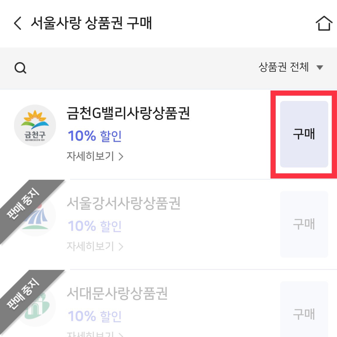 원하는 지역의 활성화된 구매 버튼을 눌러