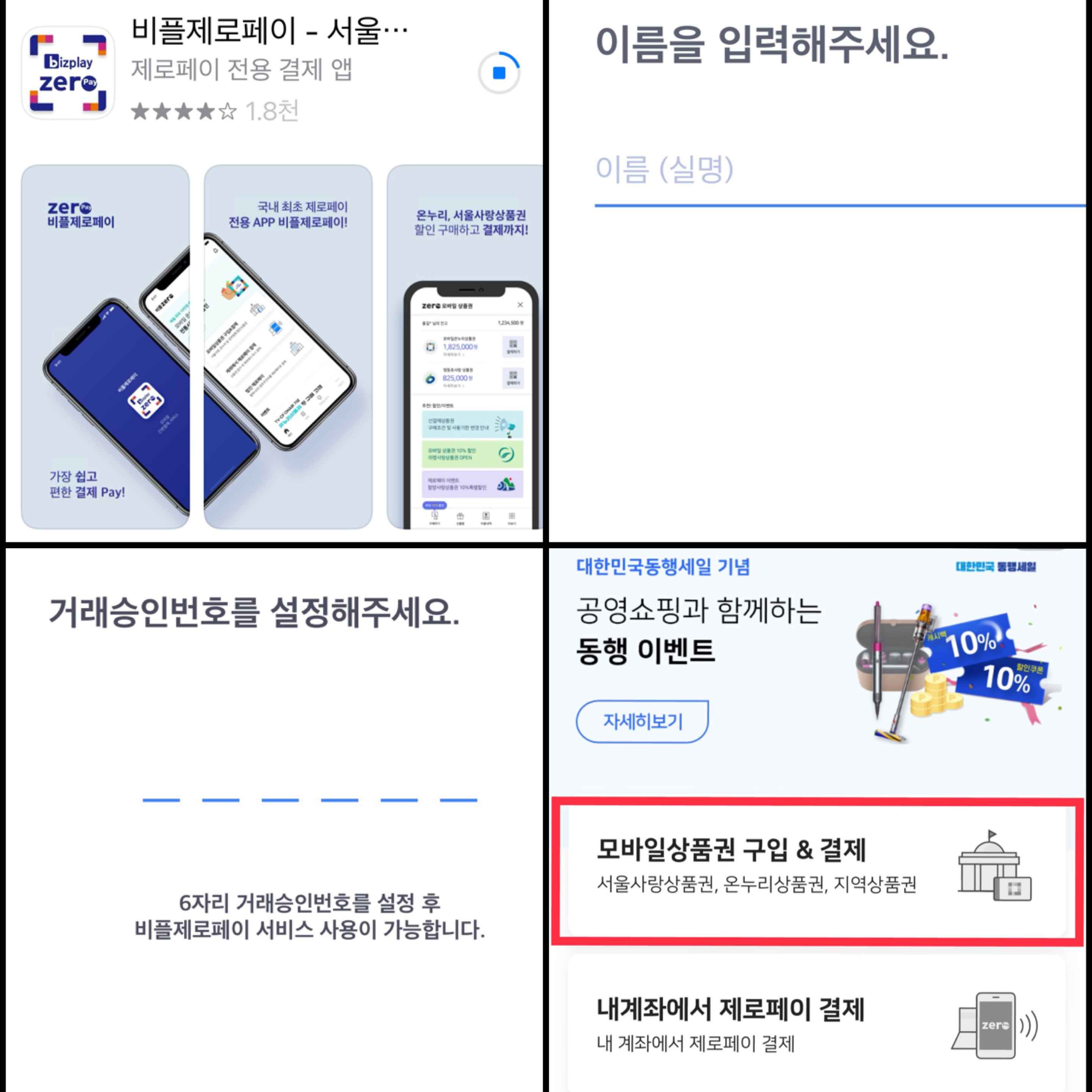 제로페이 상품권 - 개인정보제공동의서 약관 동의 - 상품권 구매