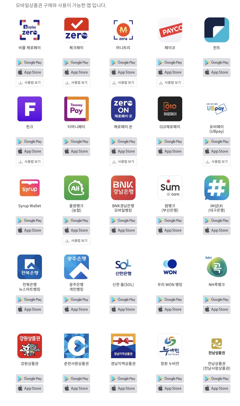 모바일상품권 구매처는 아래와 같이 다양하다.