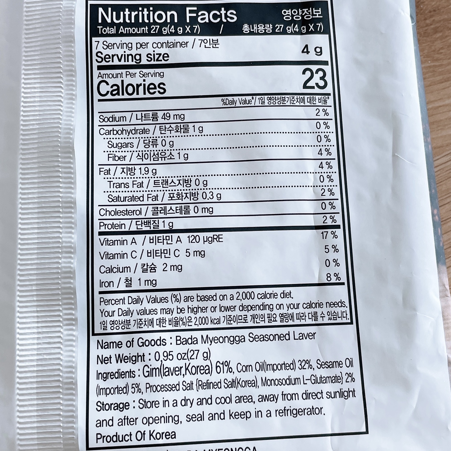 영양정보는 아래와 같음!