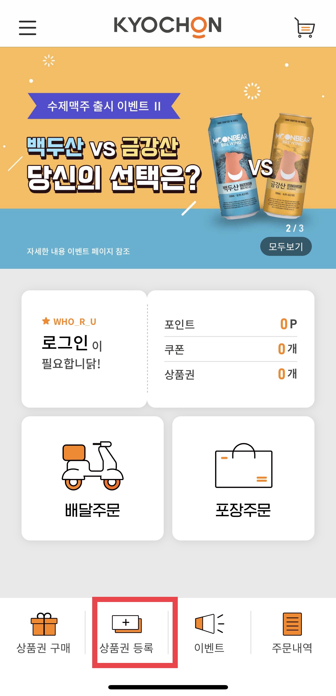 2. 상품권 등록을 누른다.