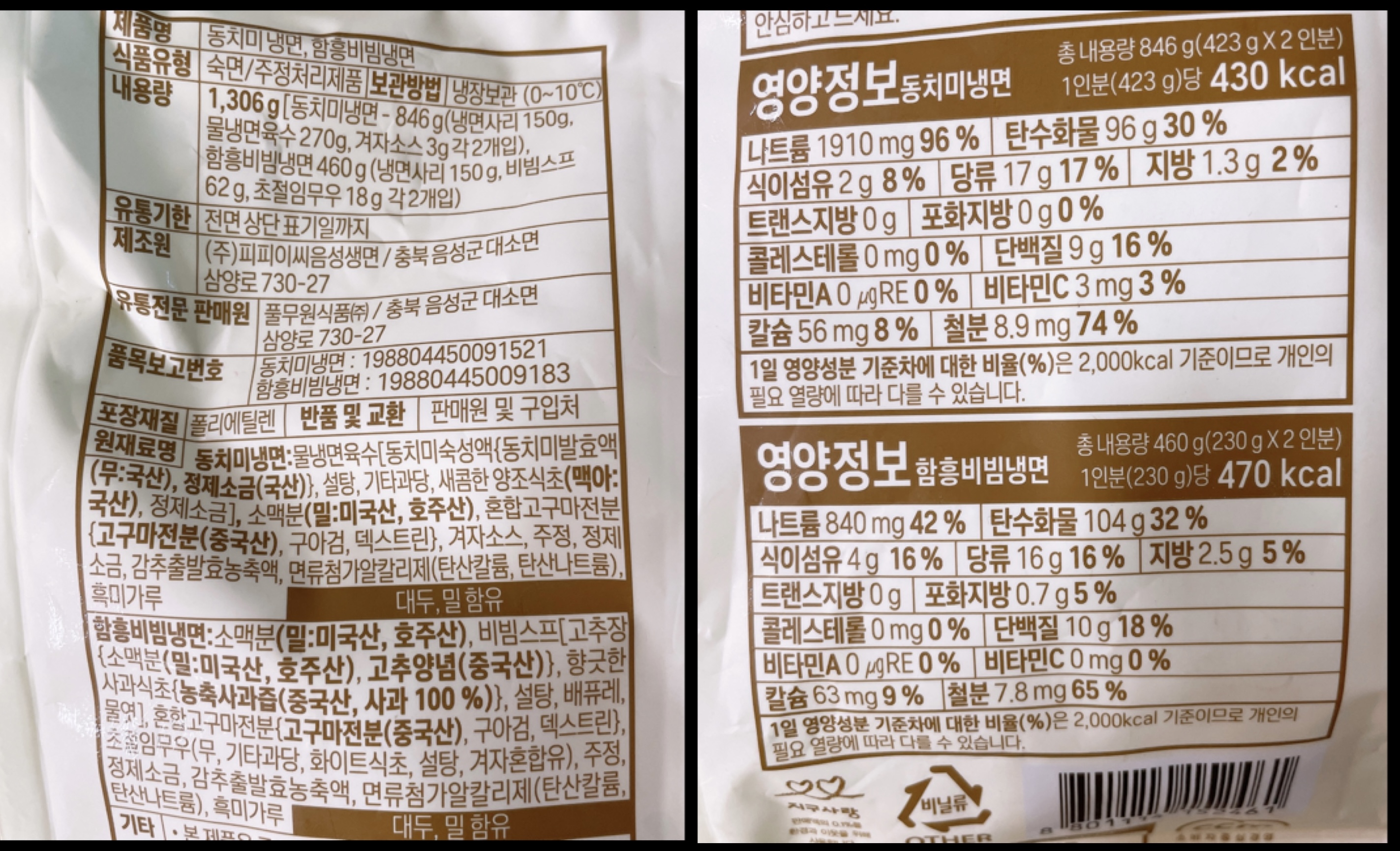 물냉이랑 비냉 함께 들어간 기획상품이 있어