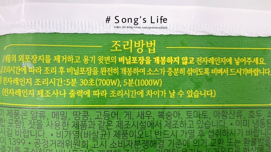 조리 방법은 전자레인지 5분!