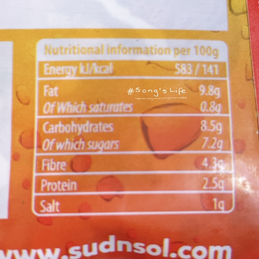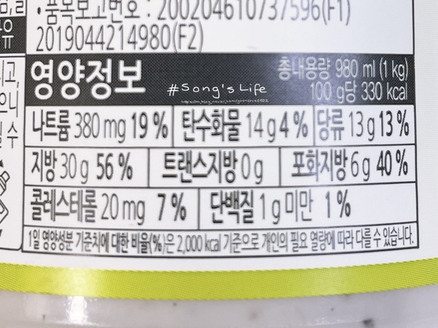 칼로리는 100g당 330kcal이다.