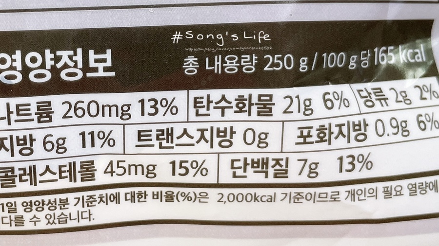 나트륨 650mg, 지방은 15g 함유함