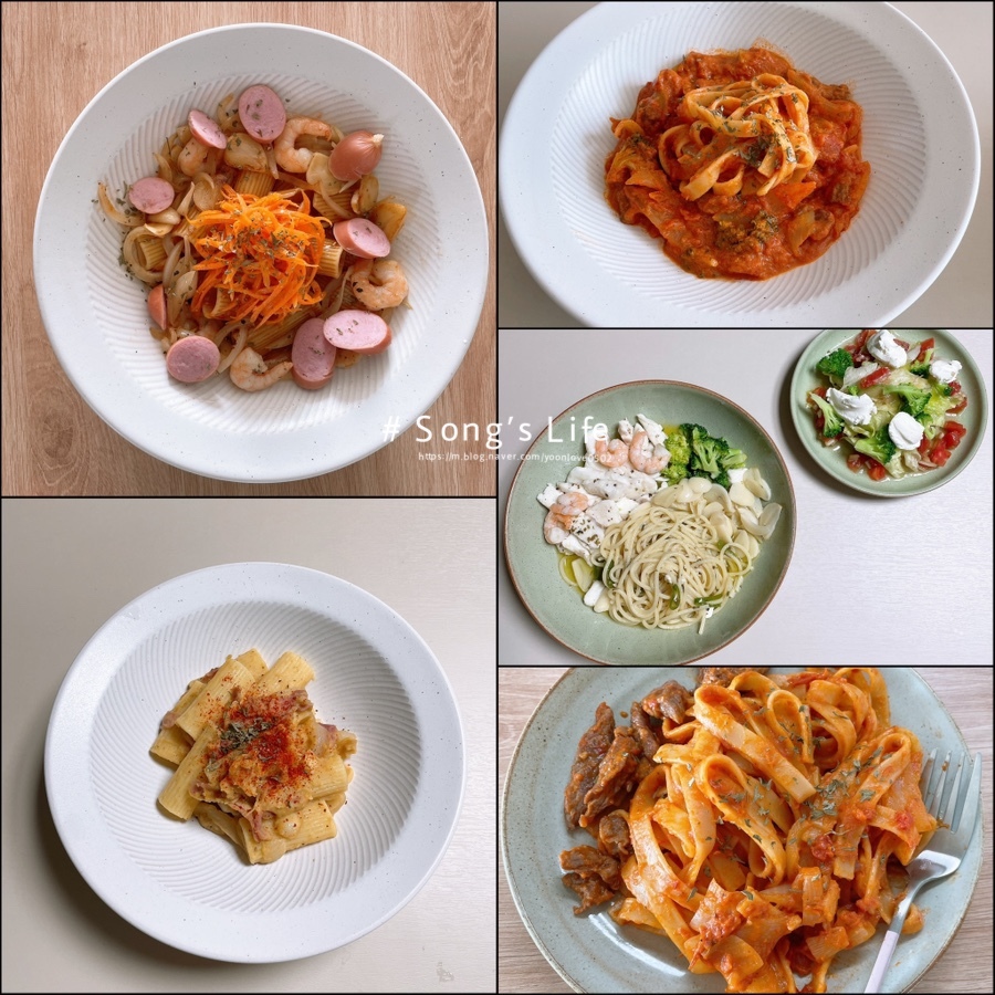 5종류의 파스타를 골고루 만들어 먹어봤다.