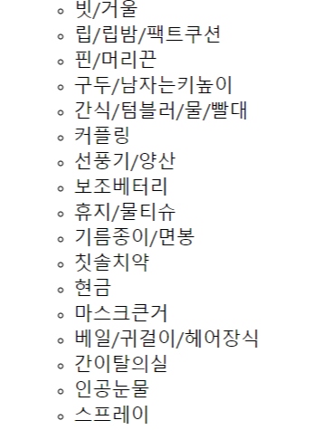 귀찌, 헤어장식, 면사포, 의상(원피스) 등등