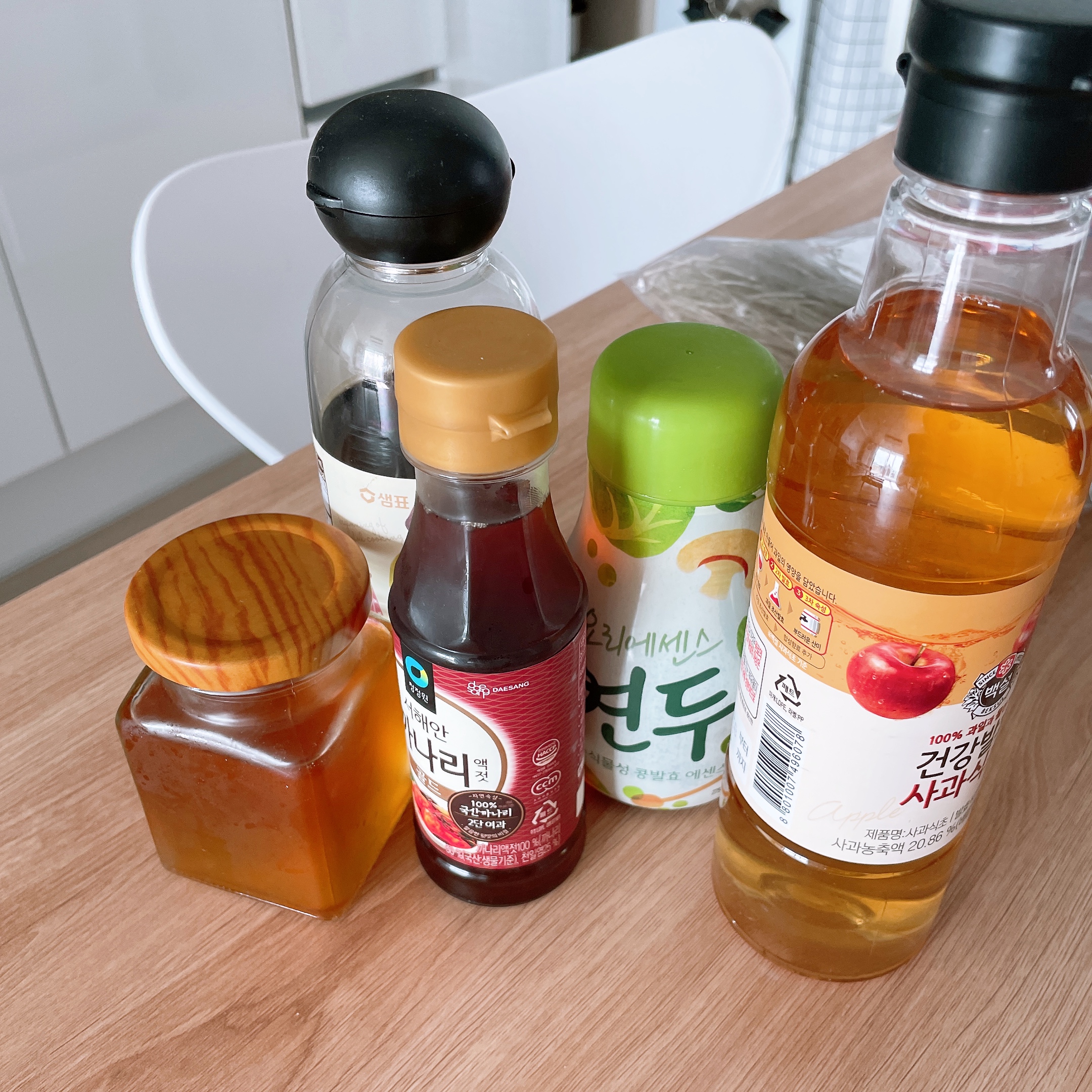간장, 매실액, 액젓, 연두, 식초, 고추기름