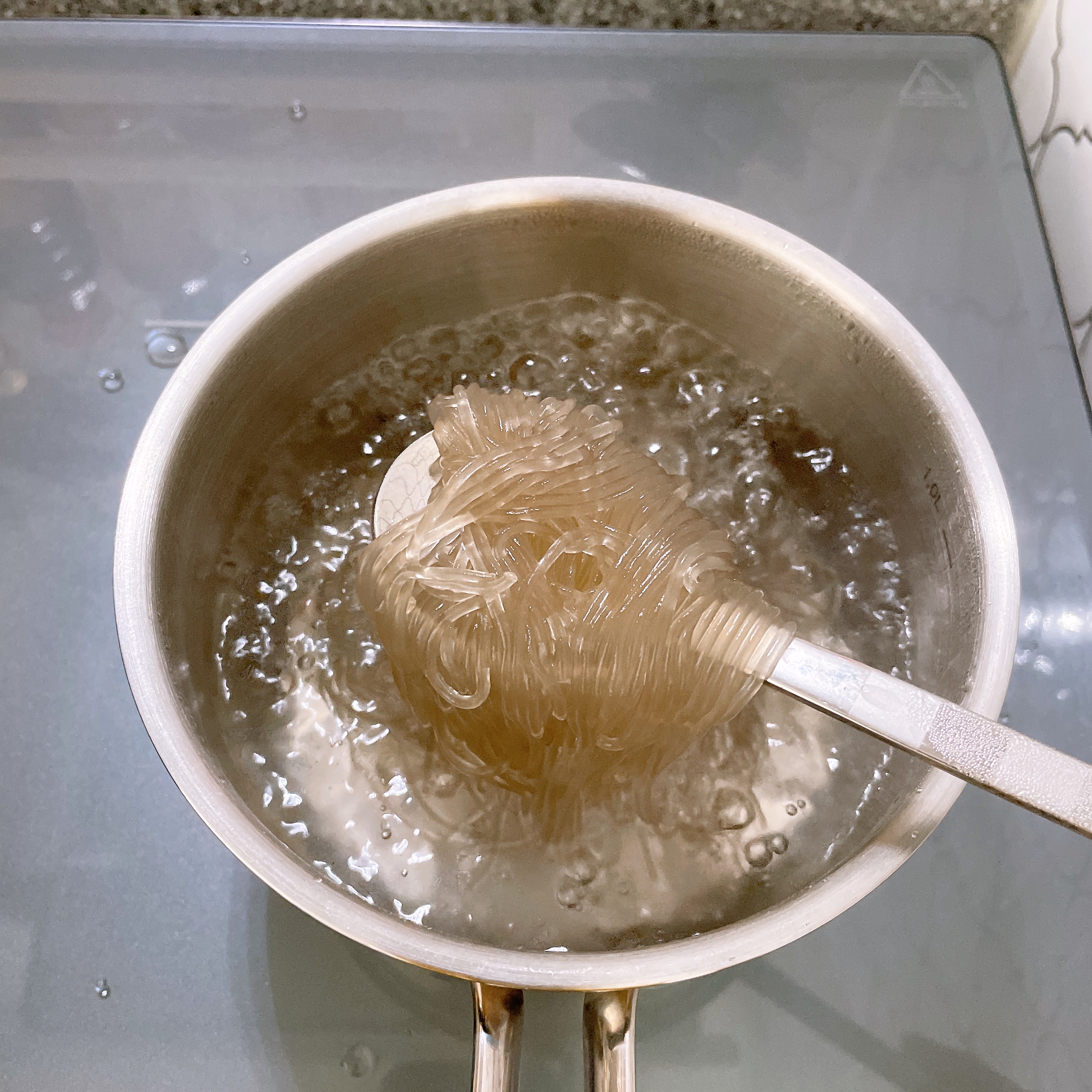 먼저 물을 끓여 당면을 삶는다.