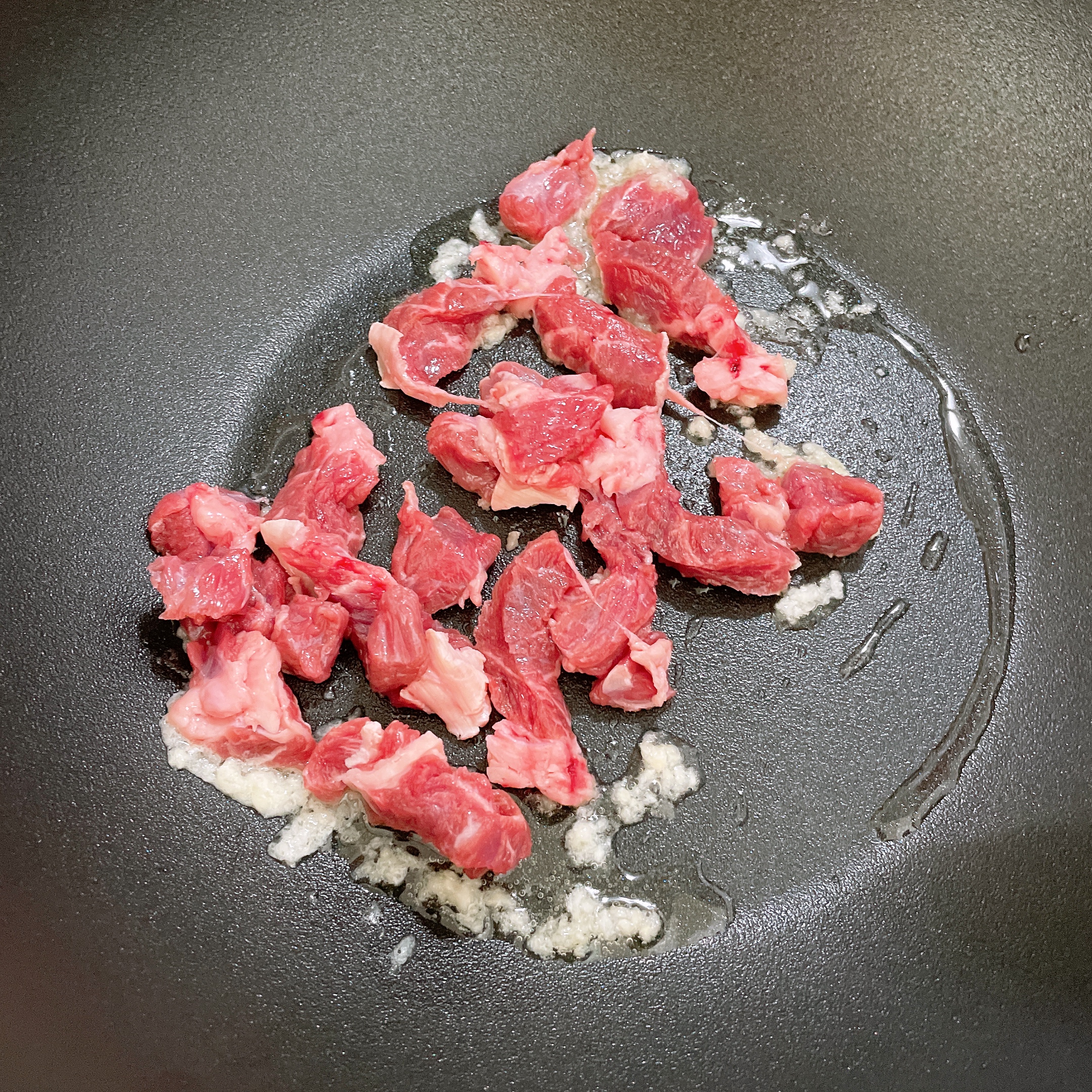 식용유 두르고 마늘을 볶는다.
