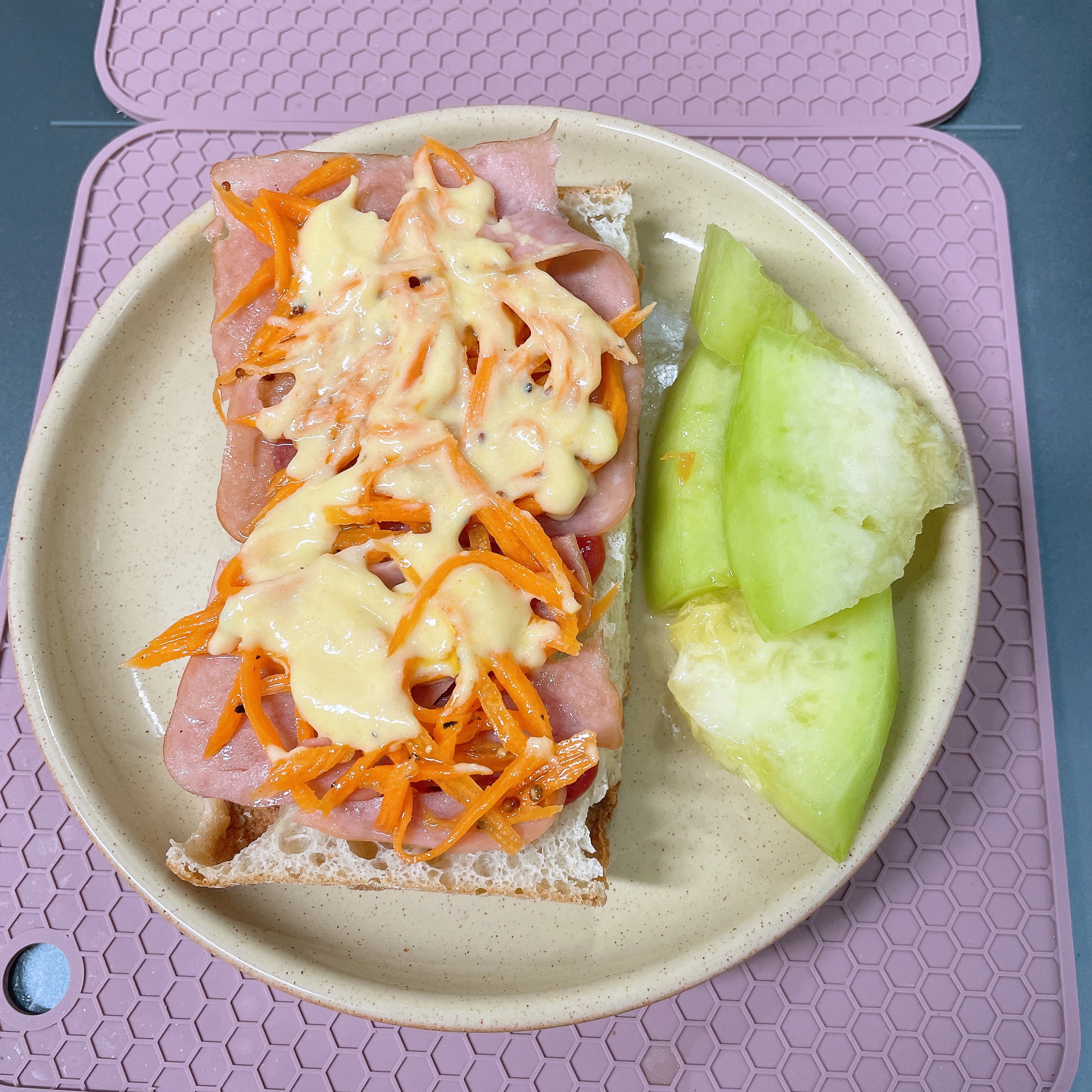 후무스 얹고 당근라페 얹어서🥕