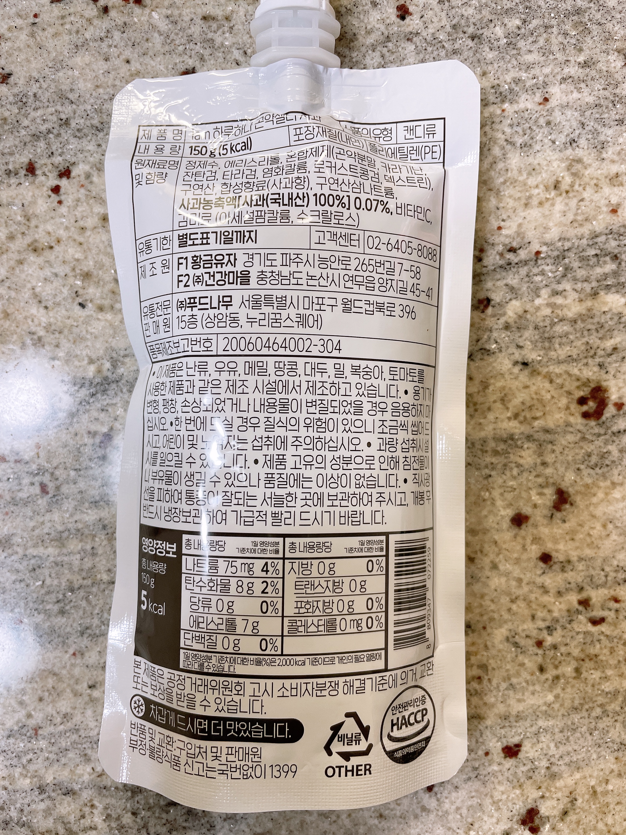 곤약젤리 칼로리는 5kcal이고