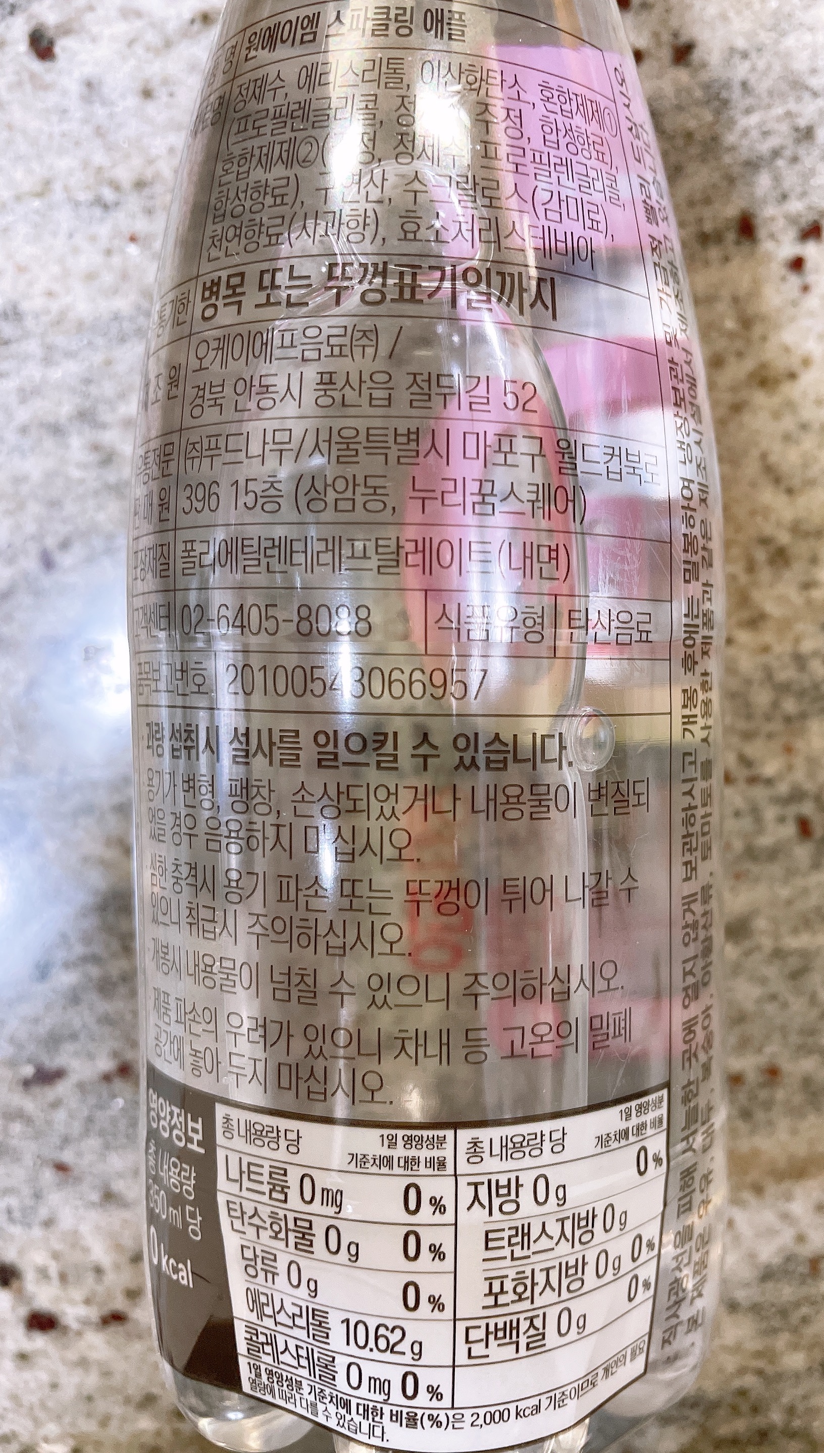 스파클링애플 칼로리는 0kcal이다.🍏