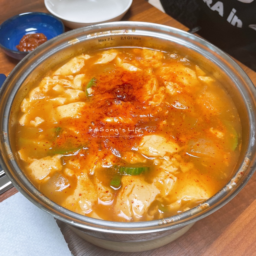 다담 순두부찌개를 이용해 만들었다.