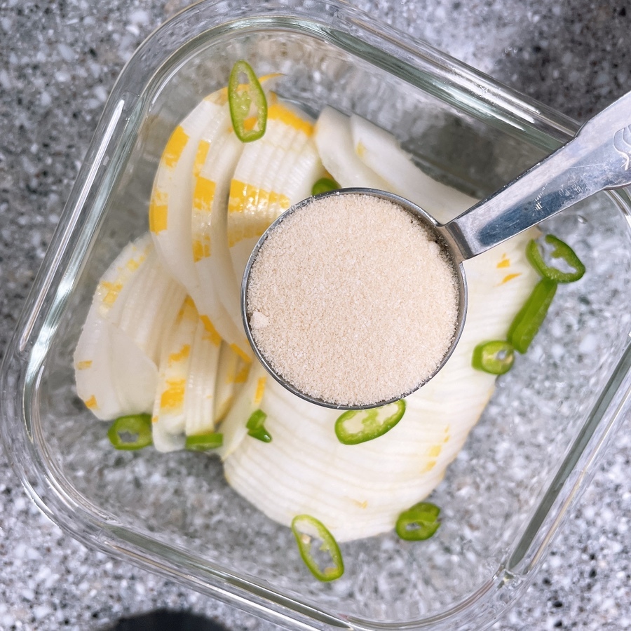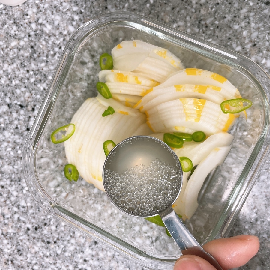 레몬즙1, 식초1, 설탕1, 소금1/2, 사이다1을